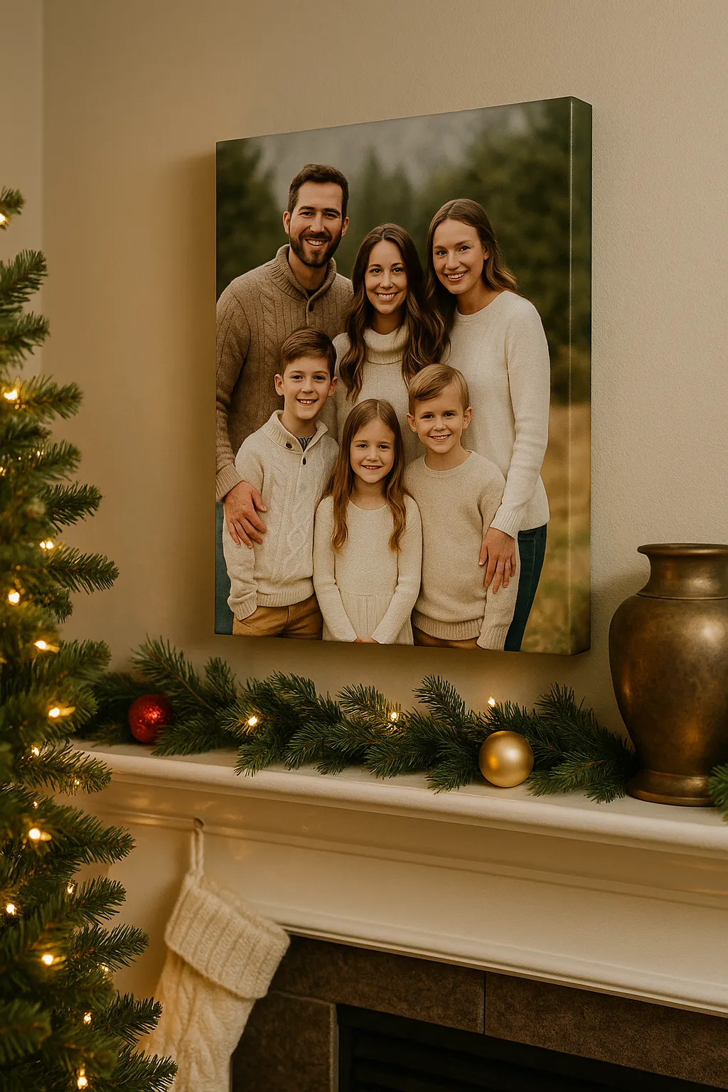 Go beyond the card and turn your holiday photos into statement pieces. Create a gallery wall, a showpiece over the mantel or a meaningful gift for family.